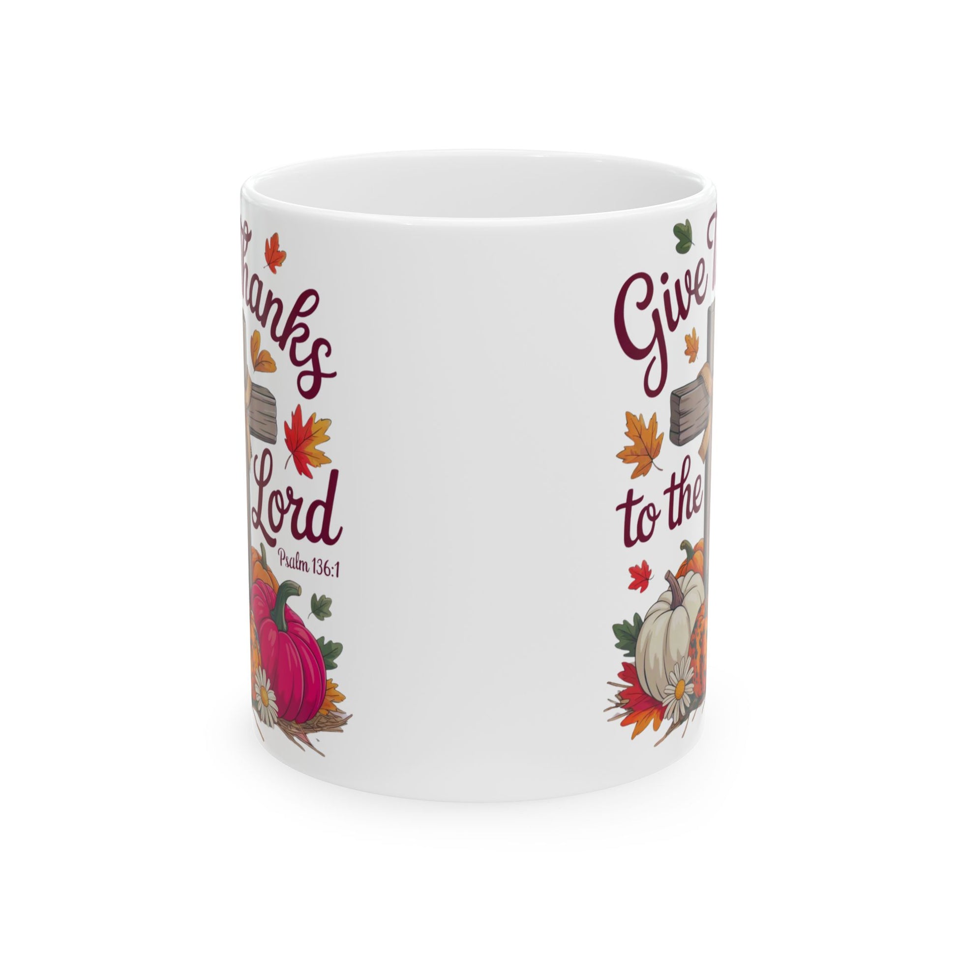 Mug: Give Thanks To The Lord Psalm 136:1 Inspirational Ceramic Mug